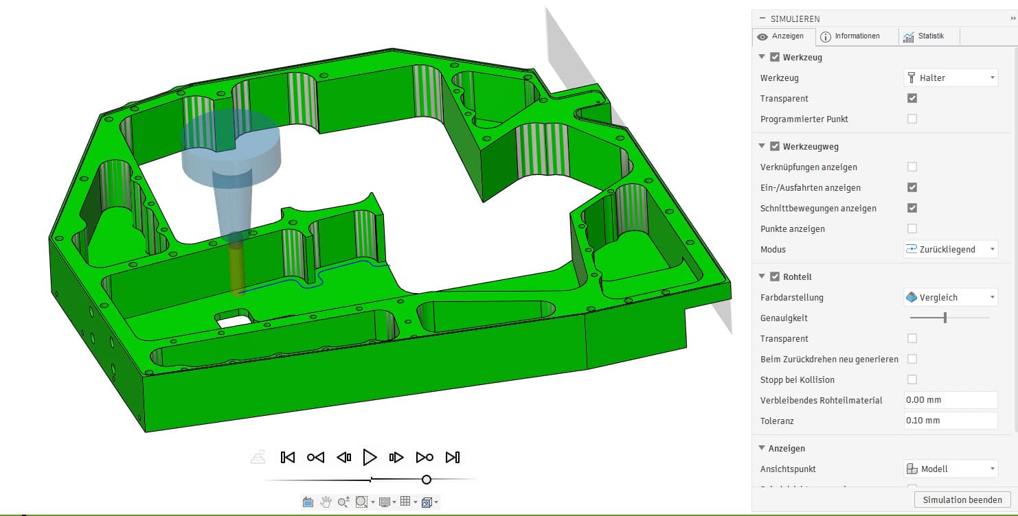 Wie genau ist die Simulation in Fusion? Die Simulation zeigt Werkzeugwege, Materialabtrag und Kollisionen auf Basis der CAD-Geometrie. Für die finale Validierung empfiehlt es sich dennoch, das Bauteil an der Maschine einzufahren.