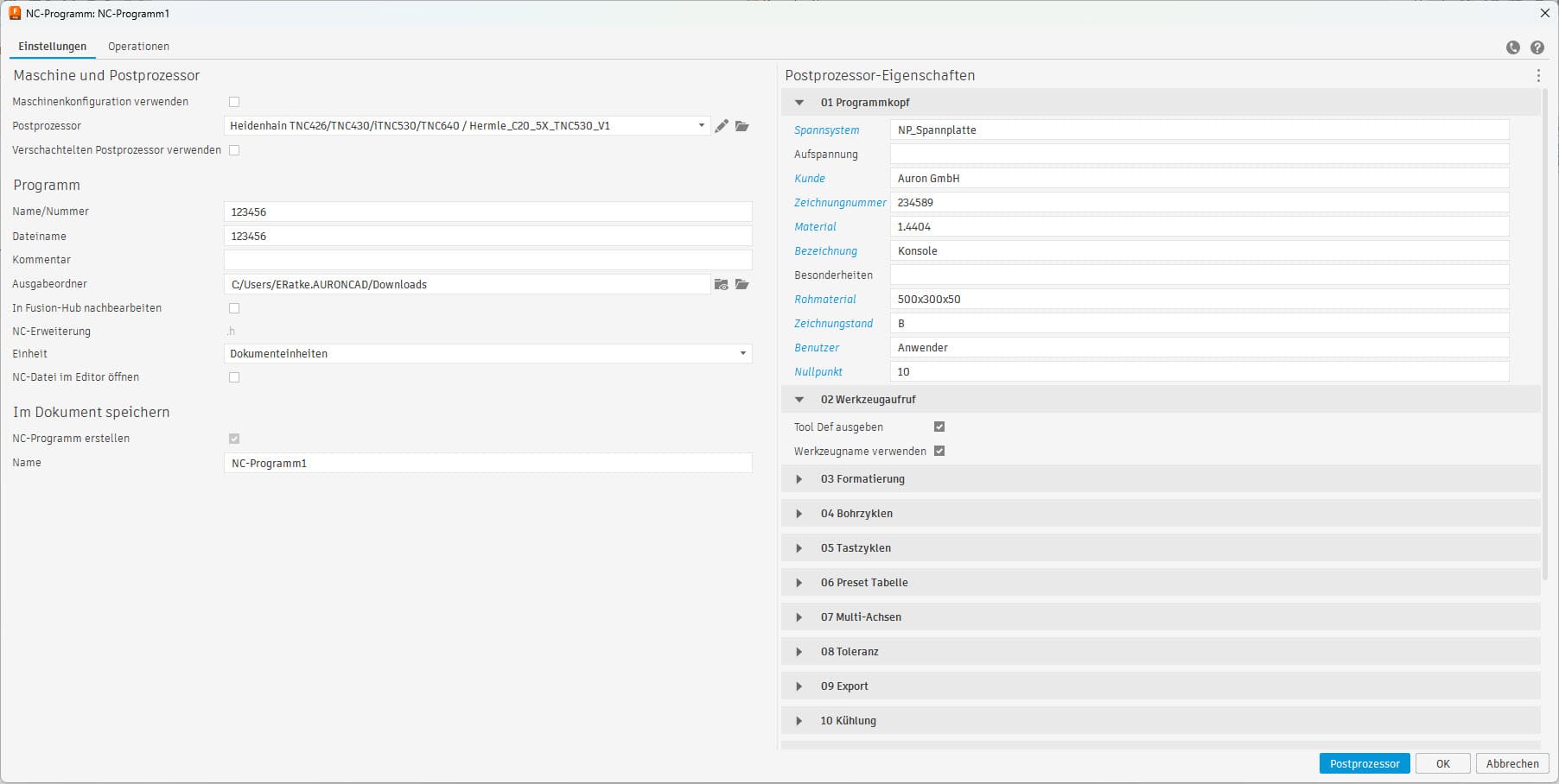 - Passenden Postprozessor auswählen