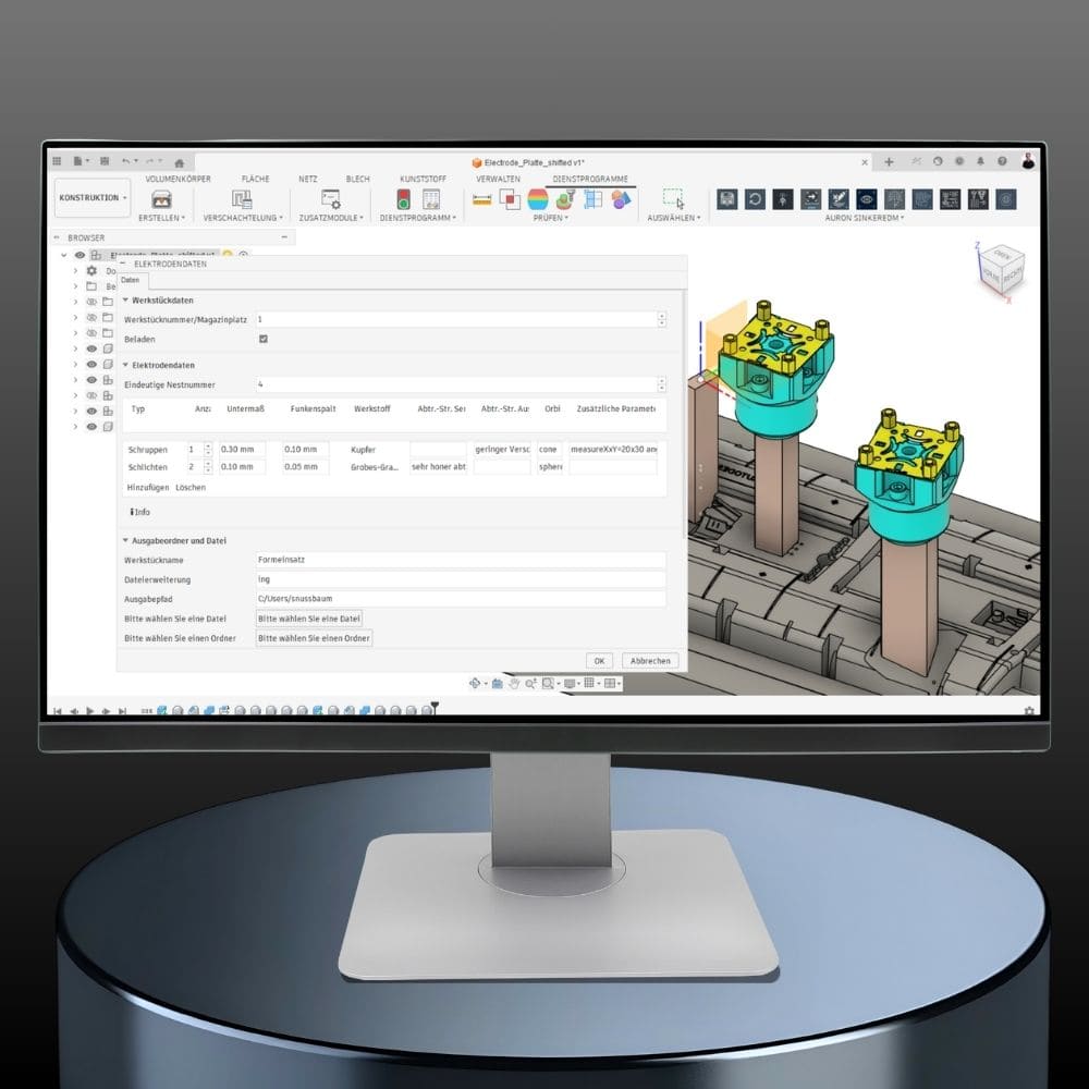 Von der Elektrodenableitung bis zum fertigen Erodierprogramm: Die beiden Add-Ins von AURON automatisieren die aufwendigsten Schritte für die Senk- und Drahterosion direkt in Autodesk Fusion.
